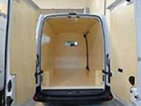 Revestimento Geral para Furgões de Carga, composto nas versões em compensado virola nas laterais direita esquerda e piso, com opção para revestimento em chapa de alumínio corrugado no assoalho e proteção das caixas de rodas originais, com divisória integral em compensado, podendo ser previstos ganchos de fixações distribuídos no compartimento e iluminação central em LED;